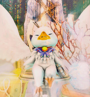 suspicious chicken who escape his fate to become nugget in mc'do--now become chimkin toilet god who answer everyone question with weird answeremergency food / pet / mascot/ chimkingod